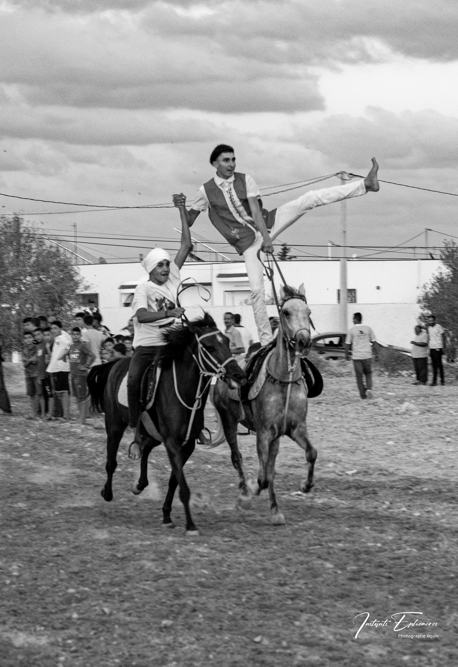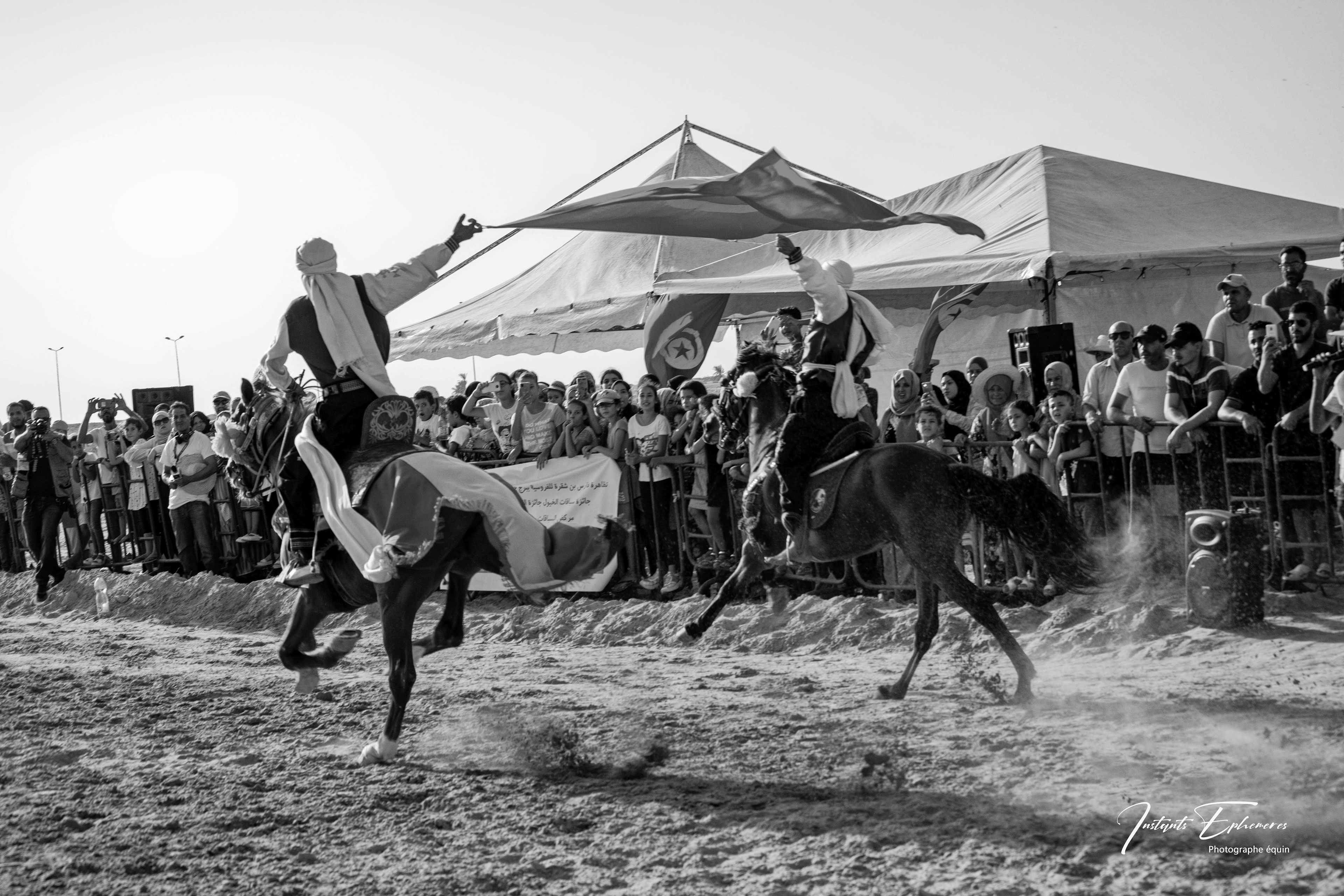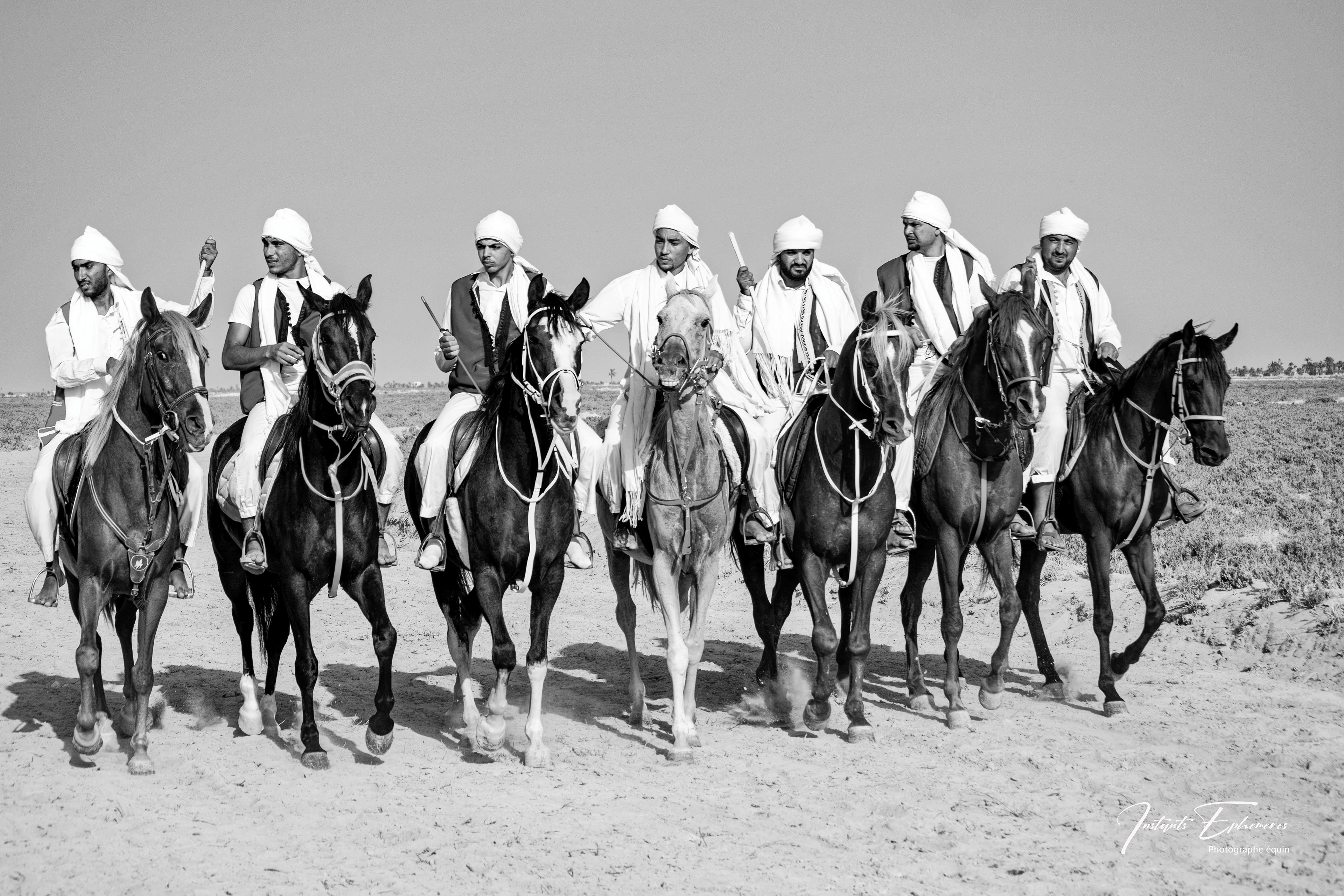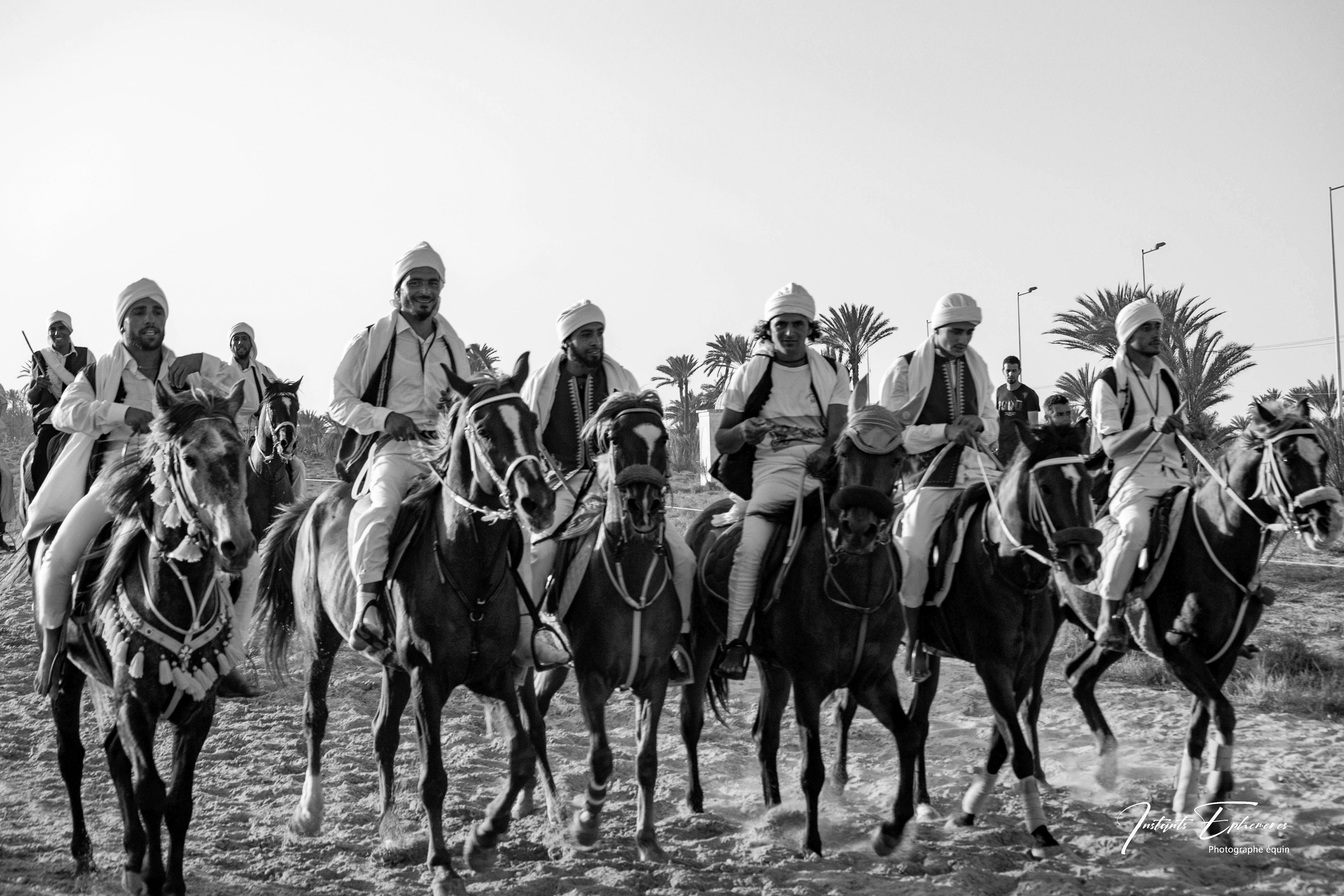 Les fantasias tunisiennes sont des traditions équestres qui remontent à l’antiquité berbère. Elles consistent à simuler des assauts militaires avec des cavaliers armés de fusils à poudre noire. Elles sont souvent pratiquées lors des fêtes importantes, comme les mariages, les naissances ou les fêtes religieuses1. Les musiciens noirs qui accompagnent les fantasias sont appelés les stambalis. Ils sont les héritiers d’une culture musicale et spirituelle venue d’Afrique subsaharienne, notamment du Soudan, du Mali et du Niger. Ils jouent des instruments comme le guembri, le tbal, le qarqabou et le ney.