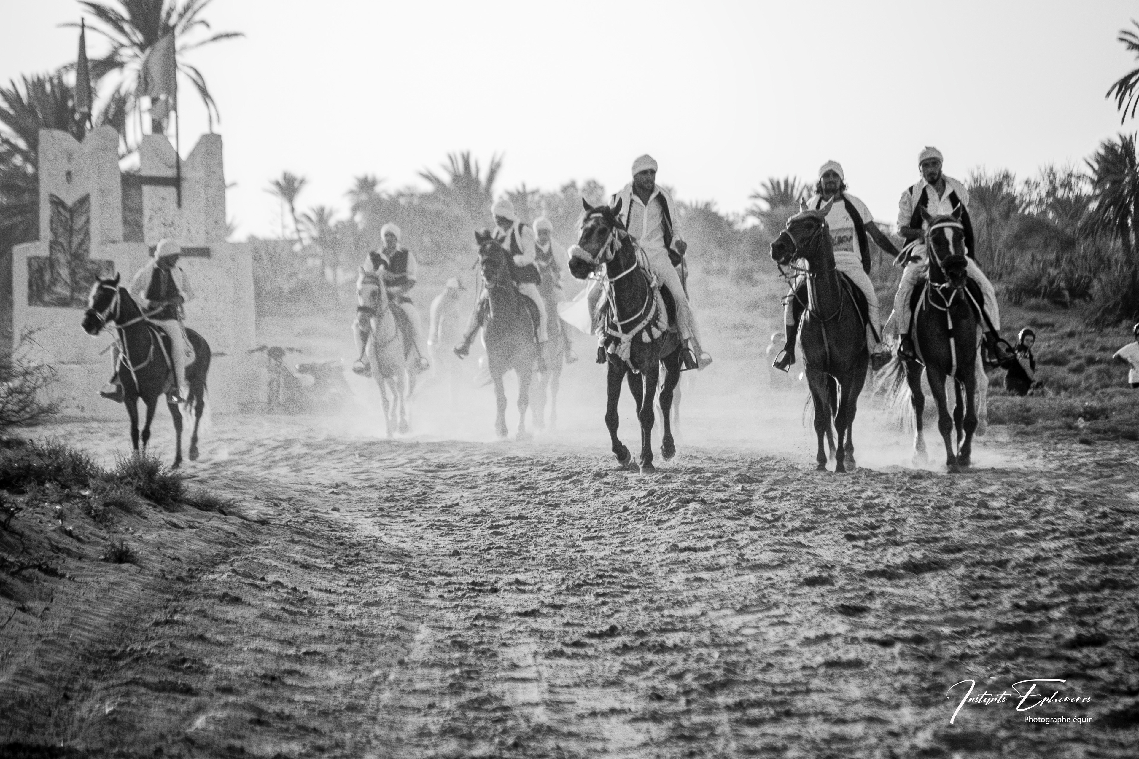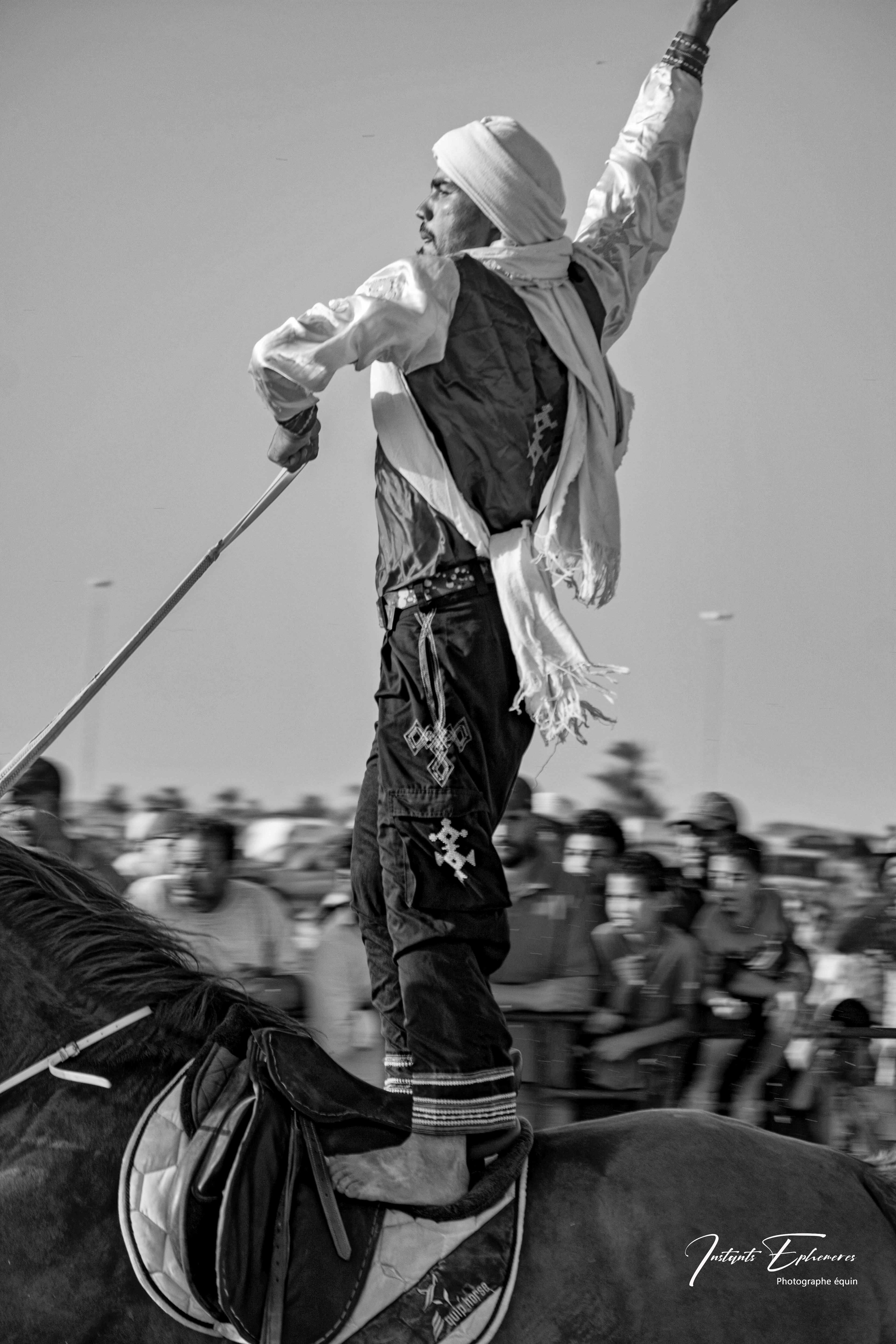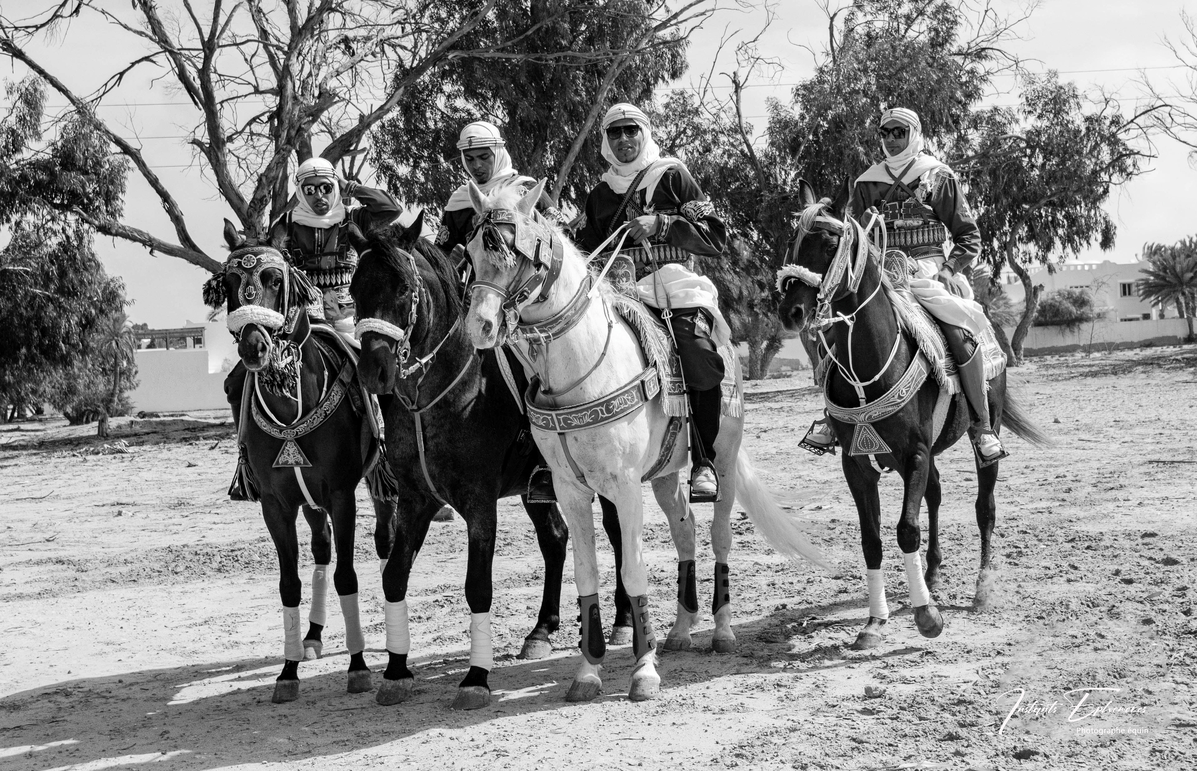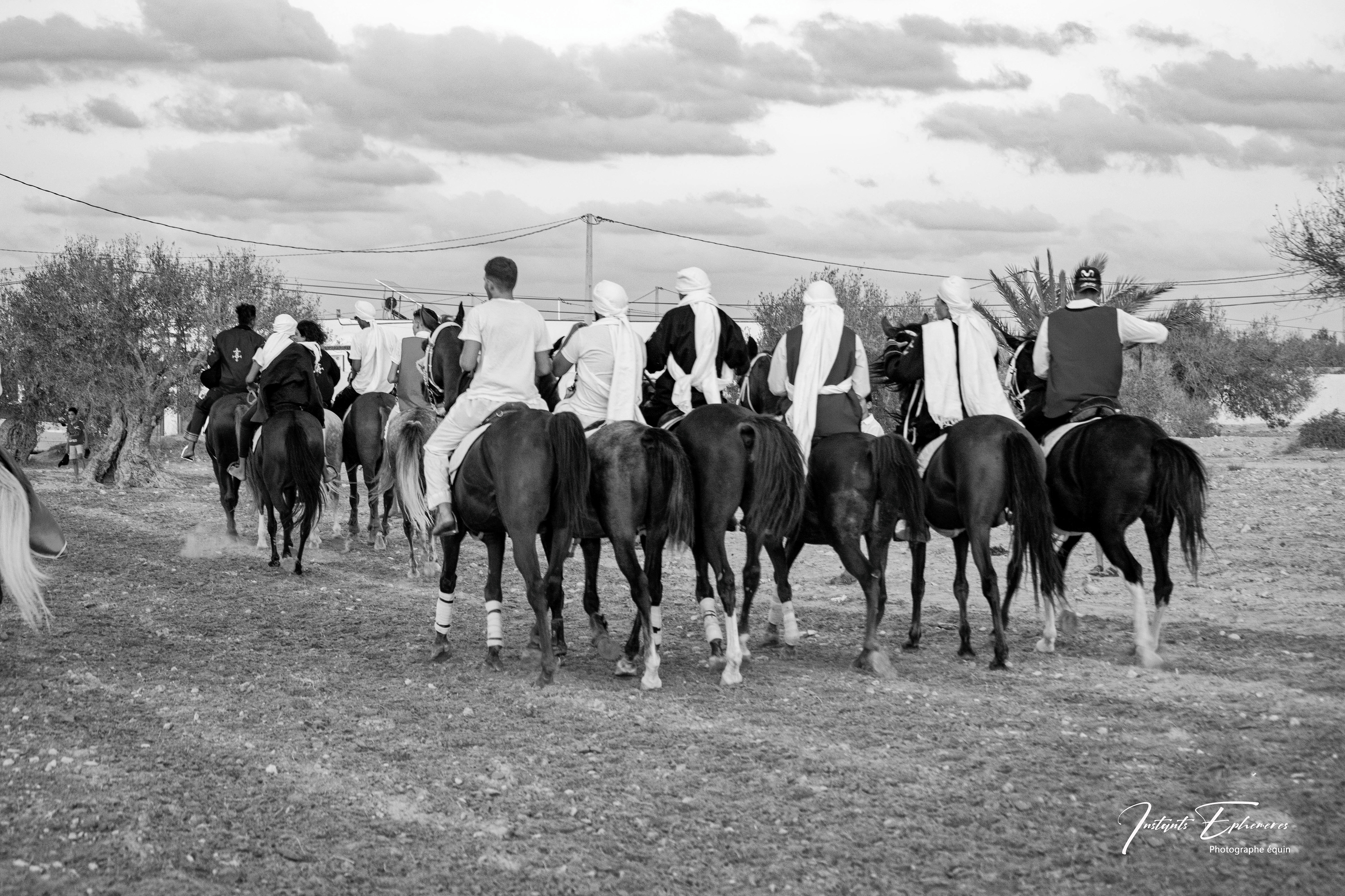 Les fantasias tunisiennes sont des traditions équestres qui remontent à l’antiquité berbère. Elles consistent à simuler des assauts militaires avec des cavaliers armés de fusils à poudre noire. Elles sont souvent pratiquées lors des fêtes importantes, comme les mariages, les naissances ou les fêtes religieuses1. Les musiciens noirs qui accompagnent les fantasias sont appelés les stambalis. Ils sont les héritiers d’une culture musicale et spirituelle venue d’Afrique subsaharienne, notamment du Soudan, du Mali et du Niger. Ils jouent des instruments comme le guembri, le tbal, le qarqabou et le ney.